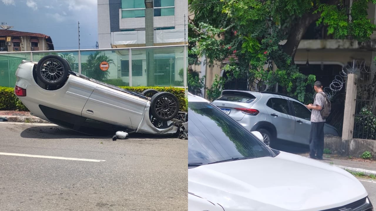 Colisão entre veículos termina com carro capotado no Parque 10 - (Foto: Reprodução/Redes sociais)