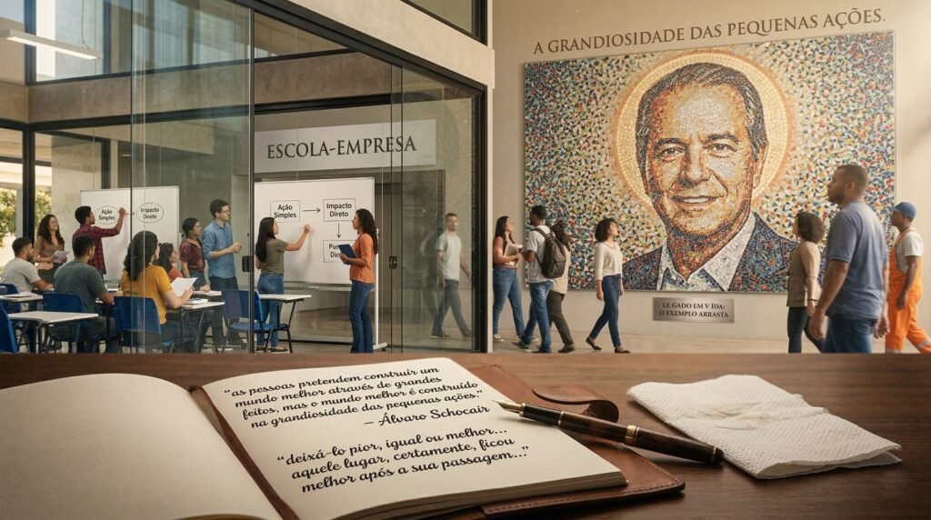 Ao fim do vídeo, o entrevistador perguntou ao Álvaro como ele gostaria de ser lembrado quando partisse do mundo. Pensei “vai dizer que quer ser lembrado como um grande empreendedor, visionário, outlier…”. Em vez disso, respondeu apenas “alguém que, por onde passou, deixou o lugar melhor”. Completou: “as pessoas pretendem construir um mundo melhor através de grandes feitos, mas o mundo melhor é construído na grandiosidade das pequenas ações”. E ainda deu o exemplo mais simples e verdadeiro que nunca pensei em ouvir na vida, explicando que, “quando você sai de um banheiro – qualquer banheiro que seja – você pode deixá-lo pior, igual ou melhor do que quando você entrou; se você não der descarga ele vai ficar pior; se você fizer tudo direito, lavar as mãos e ainda jogar o papel no lixo, você vai deixar igual; mas, se você aproveitar o papel toalha em que enxugou as mãos para enxugar a pia, que estava molhada antes de você entrar, e ainda jogar o papel no lixo, aquele lugar, certamente, ficou melhor após a sua passagem por ele”. Sen-sa-ci-o-nal!