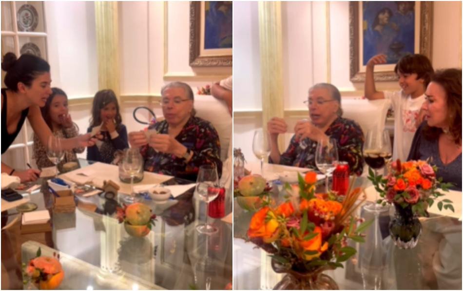 “Para vocês que estão com saudades do meu pai, vou mostrar um pouquinho da nossa celebração de Ação de Graças. Como sempre, ele não perdeu a oportunidade de fazer suas gracinhas”, escreveu