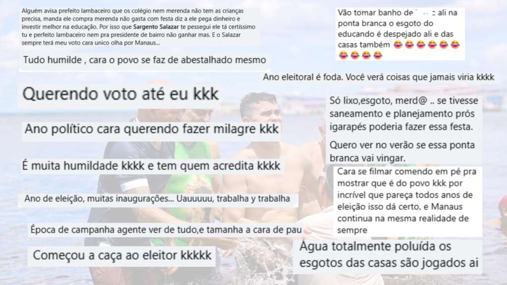 Muitas críticas também destacaram problemas estruturais da cidade, como falta de saneamento básico, poluição de igarapés e dificuldades em áreas essenciais, incluindo educação e serviços públicos. Alguns usuários afirmaram que a revitalização da praia não refletiria melhorias efetivas na realidade da população: