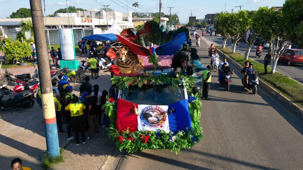 TABATINGA (AM) – Começou o XXXVII Festival da Confraternidade Amazônica na região da tríplice fronteira onde se encontram os municípios de Tabatinga (Brasil), Letícia (Colômbia) e Santa Rosa (Peru). Juntas, as delegações dos países fronteiriços celebram as diferenças que moldam suas culturas.
