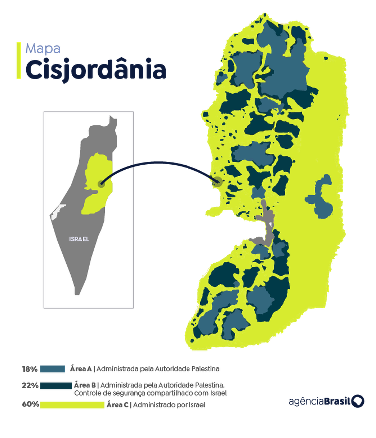 A professora de pós-graduação em relações internacionais da Pontifícia Universidade Católica (PUC) de Minas Gerais Rashmi Singh, que estuda a questão árabe-israelense há 20 anos, explica que a Cisjordânia é subdividida em três áreas distintas, em consequência dos Acordos de Oslo II, assinados em 1995.