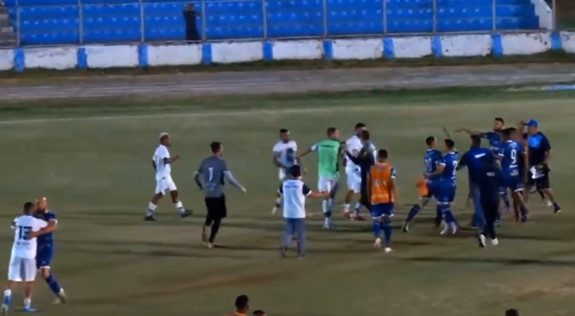Jogadores trocam socos e chutes após fim da partida (Reprodução)
