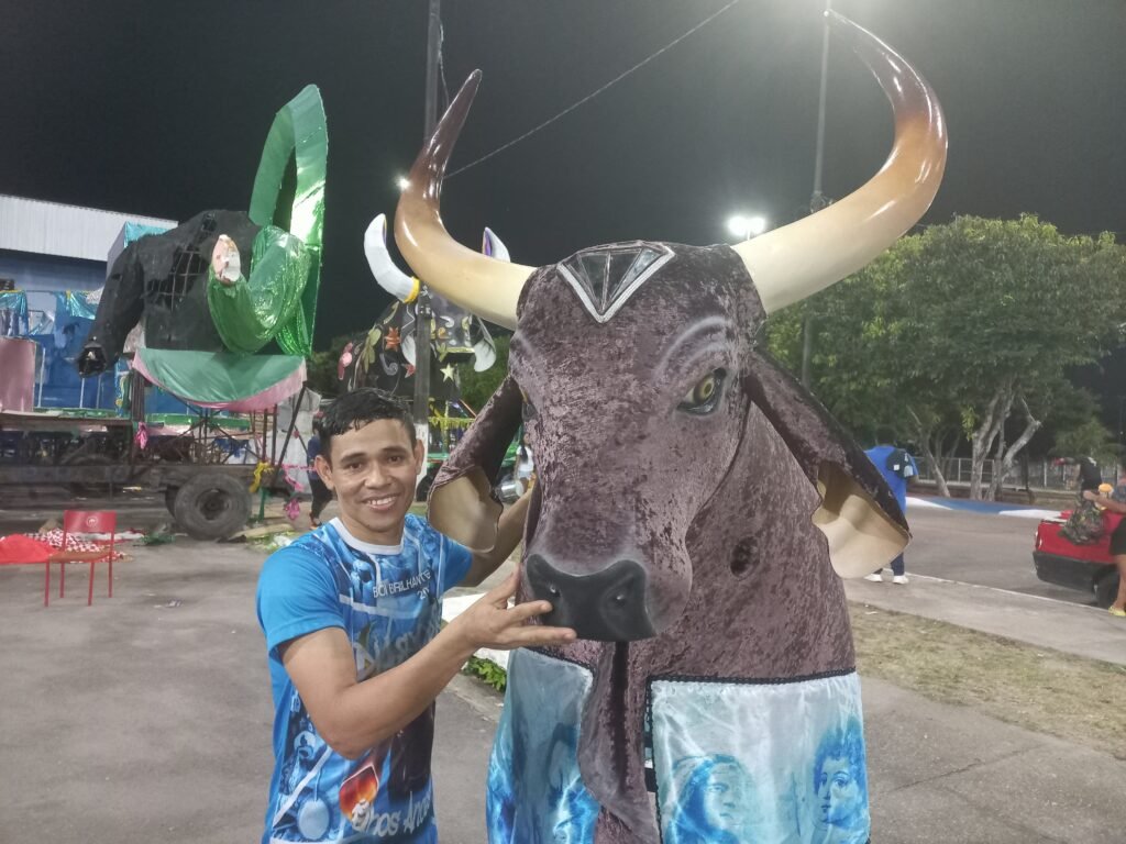 “E eu conheci o boi Brilhante quando meu tio me chamou para ir até a Bola da Suframa. Aí eu falei, fazer o que lá? não sabia que tinha o Festival, porque também não é divulgado. Cheguei lá, me deram uma camisa, eu entrei, super azul, né? Aí eu sentei, quando falaram, ah, boi Brilhante e tal, eu esperava um boizinho meia boca. Gente, quando eu vi o brilhante, eu falei, cara, que boi incrível. Incríveis na verdade, porque eram três bois.”