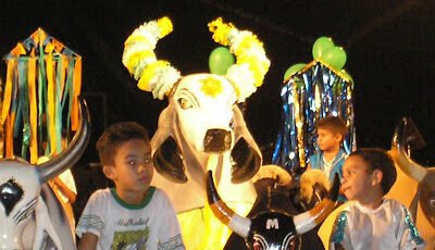 O Boi Campineiro era caracterizado pela cor cinza e um sol na testa, com as cores verde e amarelo representando o Brasil