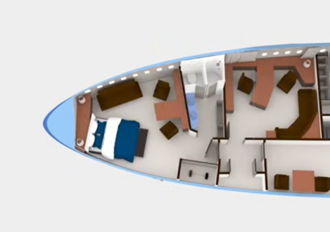 Área dos pilotos: Dois pilotos da Força Aérea Americana operam a aeronave. Eles também contam com um espaço reservado, que inclui suíte, banheiro, vestiário e sala de descanso.
