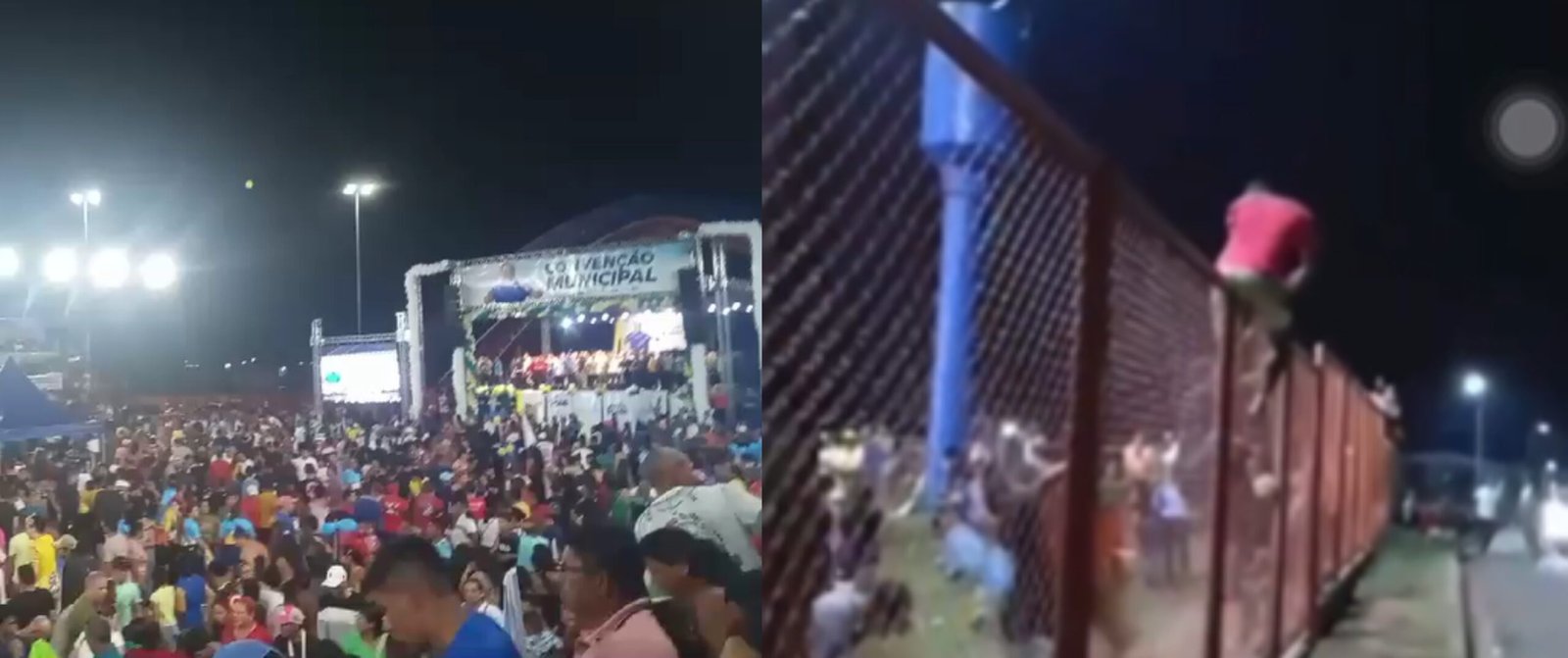 No palco, um dos organizadores pede para a população manter a calma. “Mantenham a calma, essa situação foi orquestrada para atrapalhar a nossa festa. Vamos ter calma, a segurança já agiu”, afirma.