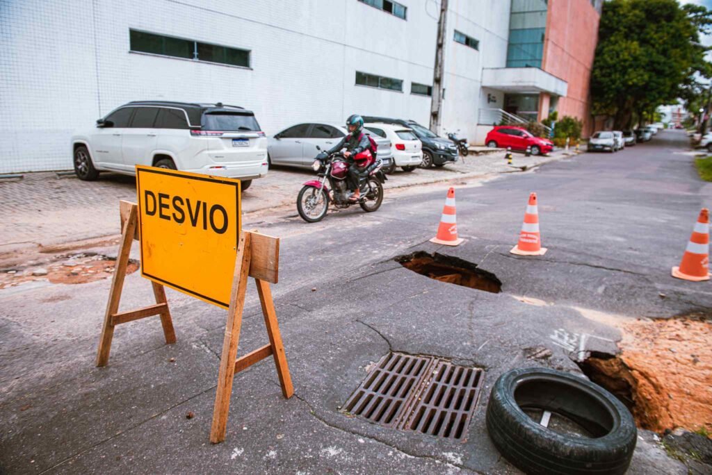 MANAUS (AM) – Crateras têm sido motivo de dor de cabeça para motoristas que circulam pela rua das Ametistas, no conjunto Vieiralves, bairro Nossa Senhora das Graças, zona Centro-Sul da capital amazonense. No local, o solo está cedendo ao lado de uma rede de drenagem da Prefeitura de Manaus.