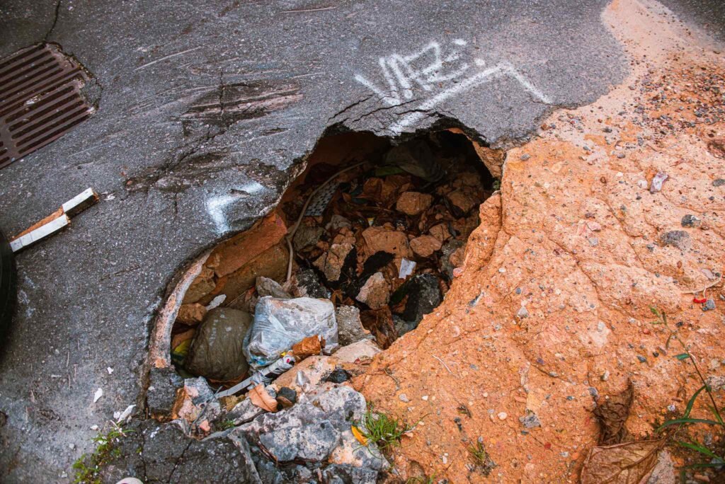 O solo está afundando ao lado da rede de drenagem (Foto: João Dejacy/Rios de Notícias)