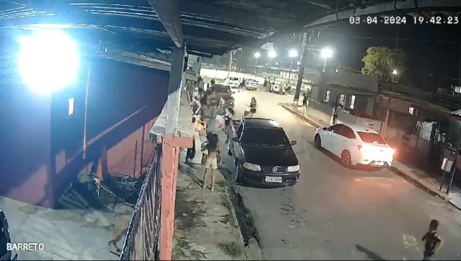 Nas imagens, é possível observar o desespero dos moradores presentes, que corriam para se proteger dos tiros, dentro de casas e atrás de carros.