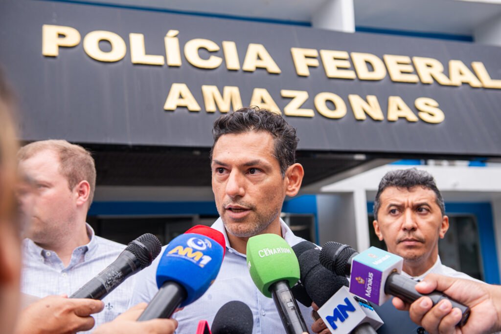 MANAUS (AM) – O prefeito David Almeida compareceu nesta sexta-feira, 22/12, à sede da Polícia Federal para denunciar um falso áudio, atribuído a ele, e que vem circulando nas redes sociais nos últimos dias. A mensagem do áudio lança críticas e ataques aos professores, chamados de “vagabundos”.