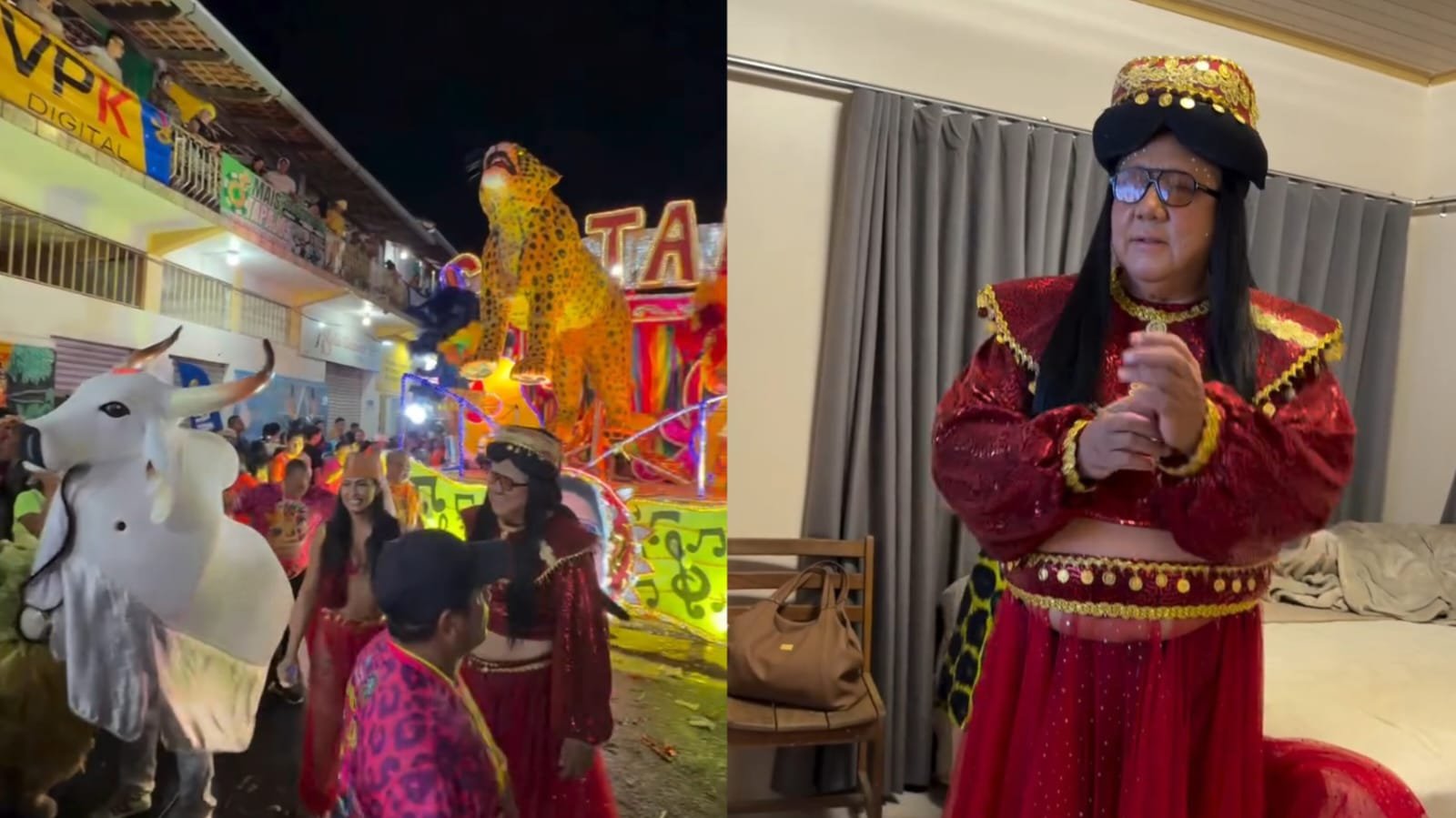 O levantador de toadas foi visto dançando ao lado de foliões, de membros dos bois Garantido e Caprichoso, e de outra mulher também fantasiada de odalisca. Fãs e admiradores pararam para registrar fotos com ele.