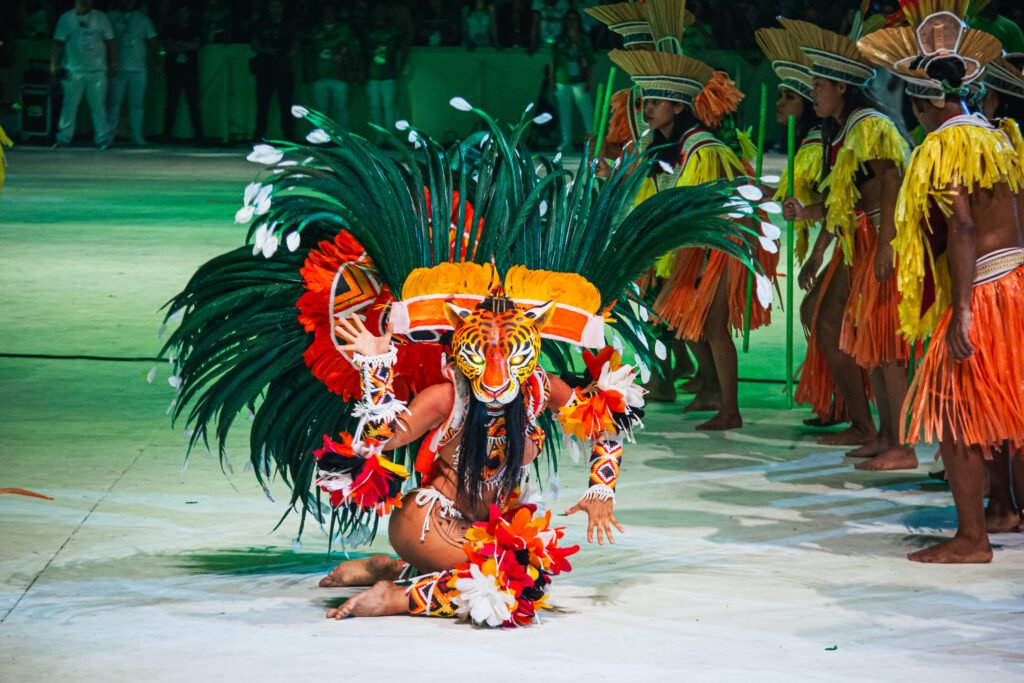 Há 59 anos, surge no fim do mês de junho o Festival Folclórico de Parintins, a maior festa folclórica a céu aberto do mundo, reunindo uma disputa tradicional entre o Boi Caprichoso, que realça o azul, e o Boi Garantido, de cor vermelha, na cidade de Parintins, conhecida como a ‘ilha da magia’.