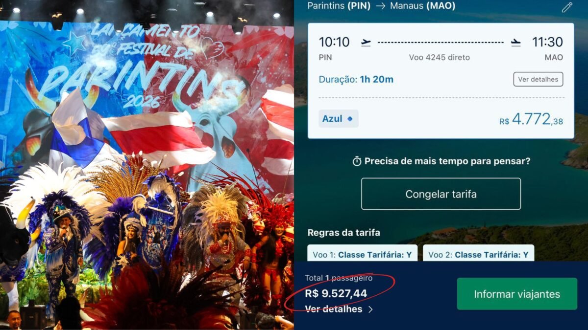 Levantamento feito pelo gabinete do deputado aponta que, em datas próximas ao festival de 2026, passagens para Parintins chegaram a custar cerca de R$ 9.500 ida e volta.
