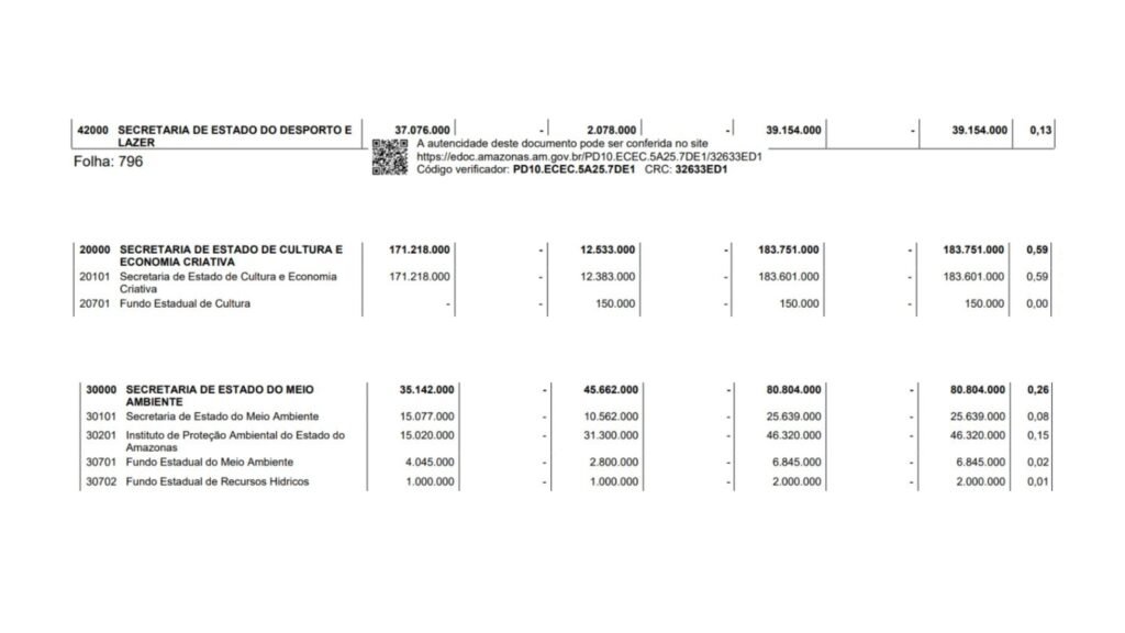 Embora o orçamento seja bilionário, a Secretaria de Esporte, por exemplo, terá um orçamento de R$ 39,1 milhões, ou seja, 0,13% do total estadual. A pasta é responsável por iniciativas como o Programa PELCI (Esporte e Lazer na Capital e Interior), o Bolsa Esporte, e a gestão de espaços esportivos como a Arena da Amazônia.
