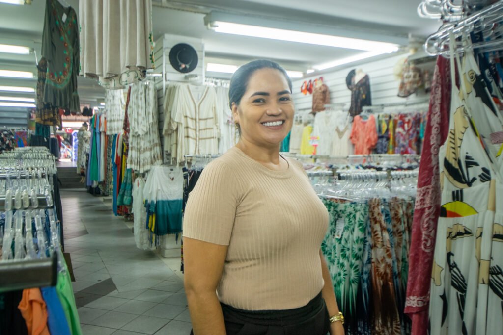 Nilda Balieiro, de 32 anos, trabalha em uma loja de sapato na rua Sete de Setembro, no Centro. Ela conta que os itens mais vendidos são os sapatos com estilo “rasteirinha”, sapatilhas e bolsas.