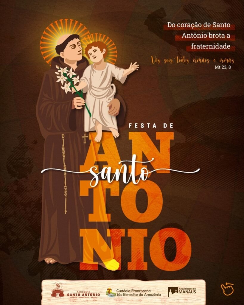 MANAUS (AM) – Os católicos celebram Santo Antônio, um dos santos mais populares do Brasil, conhecido popularmente por “Santo Casamenteiro”, no dia 13 de junho. Dessa forma, nesta quinta-feira, a Igreja Católica está com uma vasta programação para a comemorar a data. A tradicional festa em honra ao padroeiro reflete neste ano o tema: “Do coração de Santo Antônio, brota a fraternidade”.