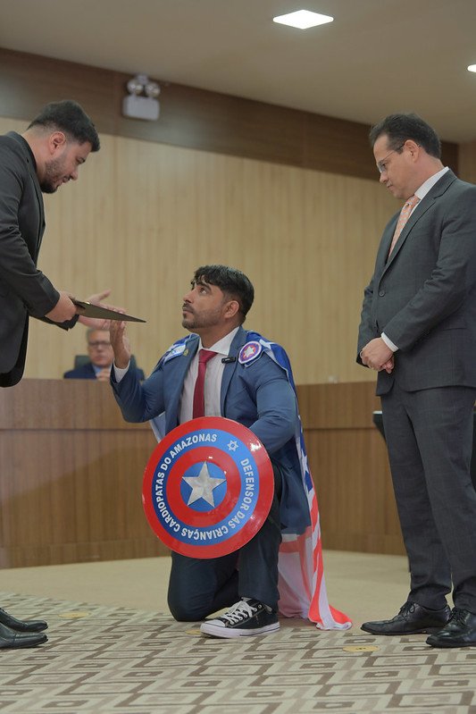 Um dos destaques foi o vereador reeleito Dione Carvalho (Agir), que compareceu à cerimônia com um traje excêntrico: terno, uma capa com as cores das bandeiras dos Estados Unidos e de Israel, e um escudo semelhante ao do Capitão América. O adereço trazia a frase “Defensor das Crianças Cardiopatas”, uma referência à sua atuação em prol de crianças com problemas cardíacos no Amazonas.