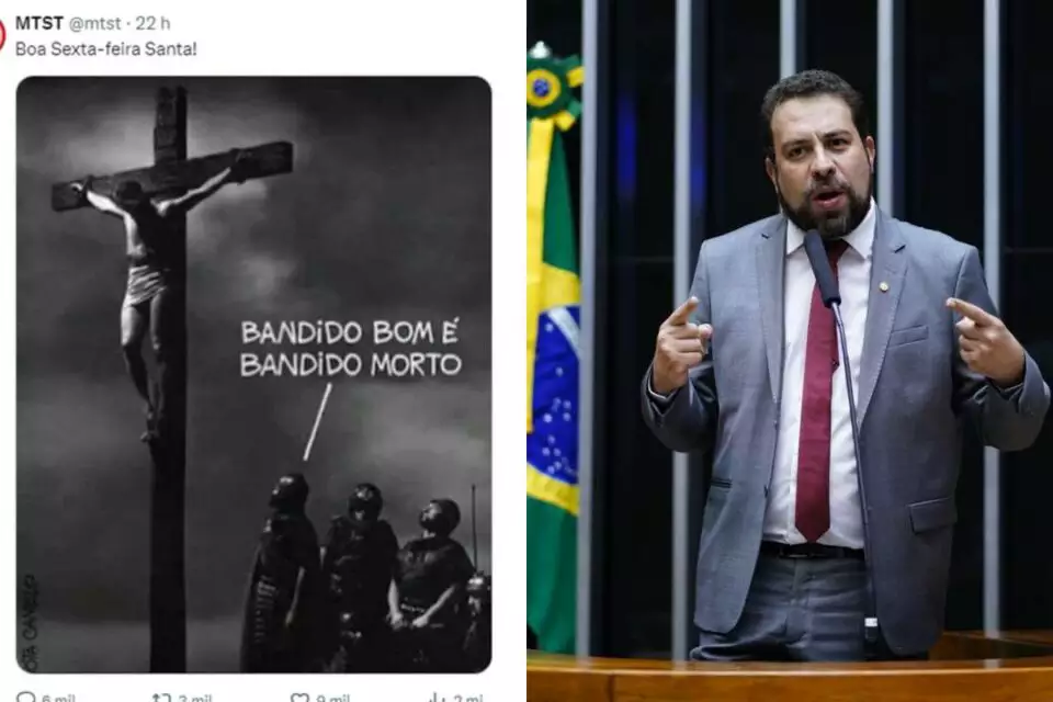 SÃO PAULO (SP) – Pré-candidatos a prefeito de São Paulo e parlamentares de direita criticaram o deputado federal Guilherme Boulos (PSOL) por causa de uma publicação do Movimento dos Trabalhadores Sem Teto (MTST) que utiliza uma imagem de Jesus Cristo crucificado enquanto um dos soldados romanos diz: “bandido bom é bandido morto”.