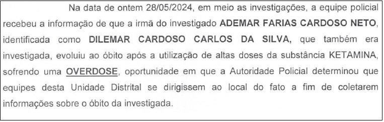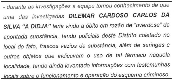 Com a morte repentina de Djidja, ocorrida na última terça-feira, 28/5, a polícia foi ao local para coletar evidências. Durante a perícia, foi confirmado que Djidja apresentava múltiplos sinais de uso injetável da substância.