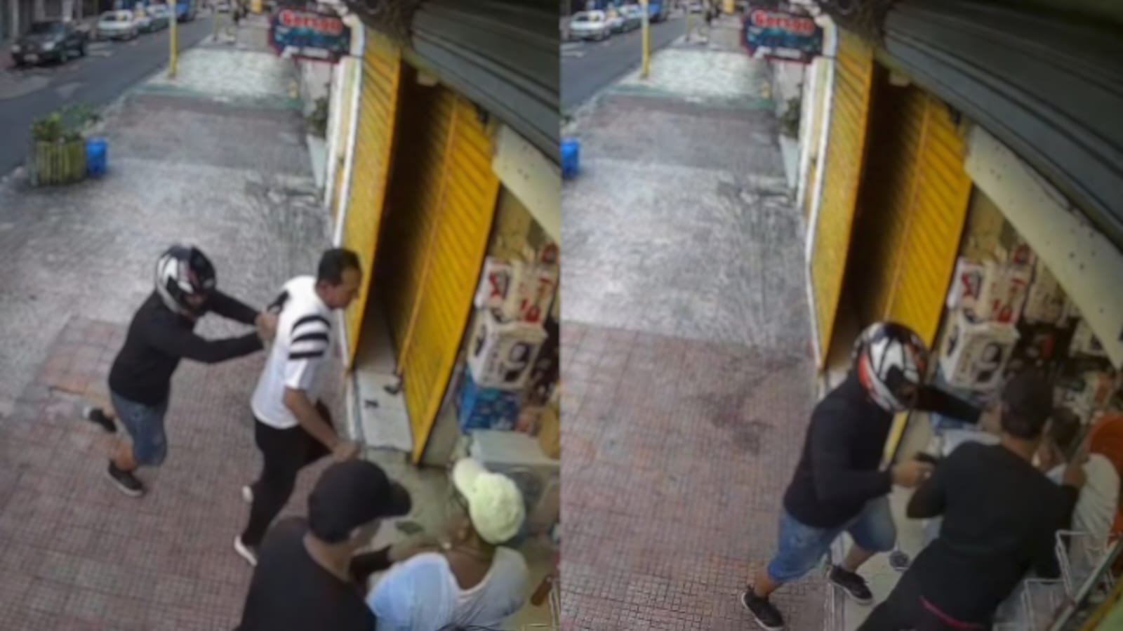 Outro homem que passava pelo local acabou sendo puxado para dentro do estabelecimento pelos criminosos, tornando-se mais uma vítima do assalto. Nas imagens, é possível ver um dos suspeitos dando ordens e mantendo as vítimas sob ameaça, enquanto o outro recolhia pertences e objetos de valor.