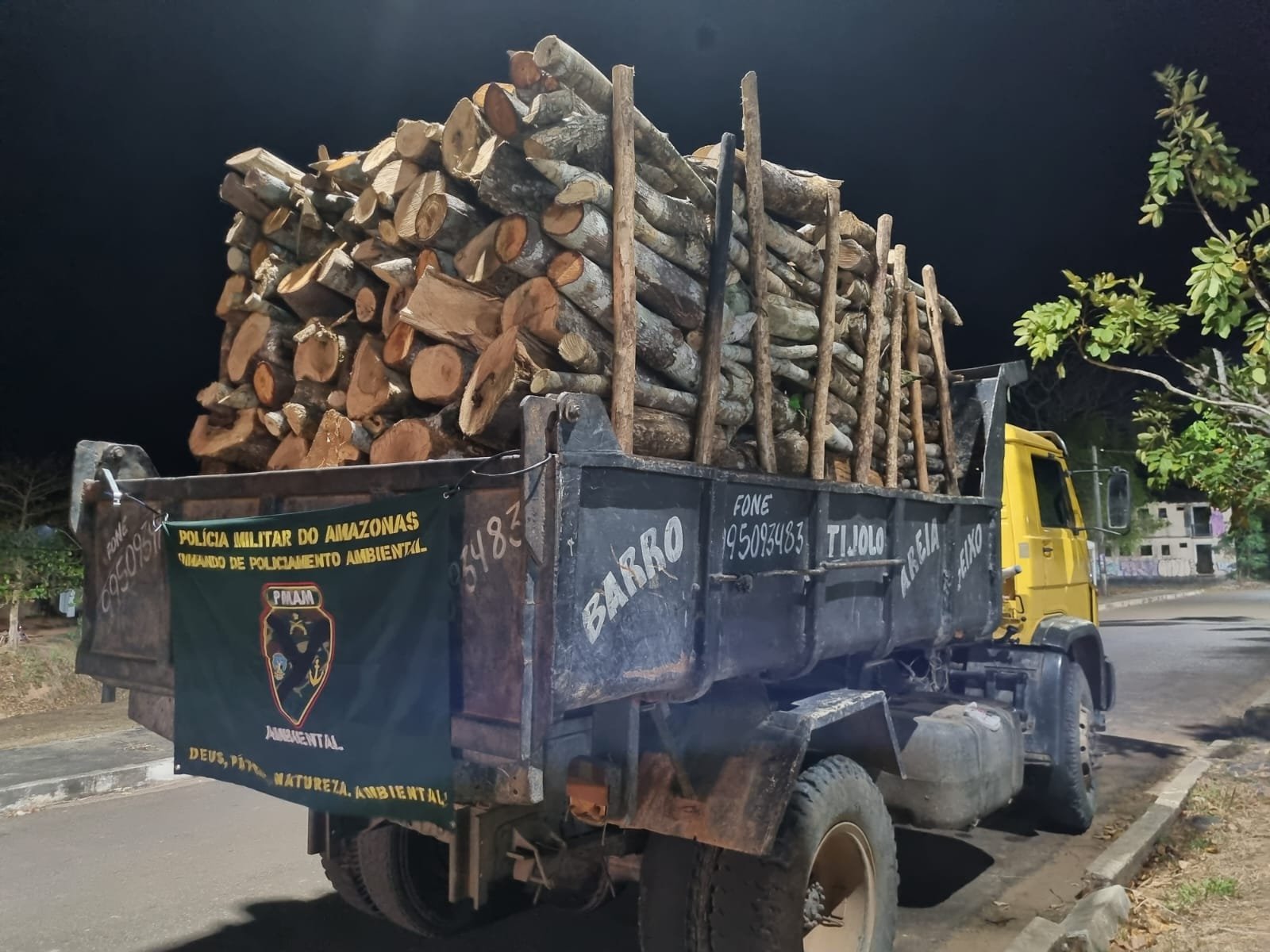 O subcomandante de Comando de Policiamento Ambiental (CPAmb), tenente-coronel Márcio Leite, informou que as equipes estavam em patrulhamento, quando por volta das 17h30, na Ramal Novo Amanhecer, no quilômetro 26, da Rodovia Manuel Urbano, flagraram o suspeito de 39 anos. O homem estava transportando cerca de 14 toras de em um caminhão.