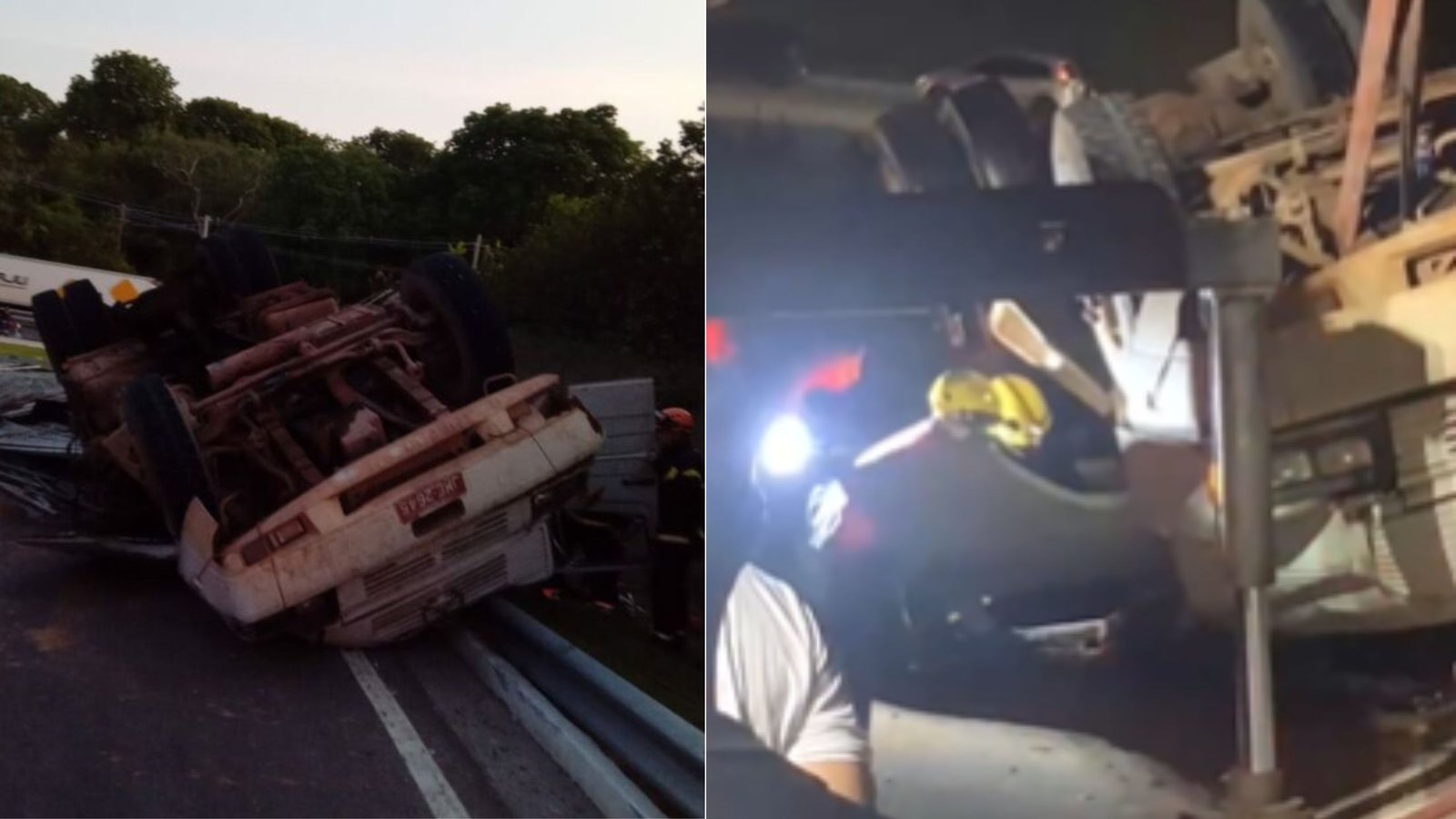 Testemunhas que estavam no local afirmaram que o motorista, que estava acompanhado de um passageiro, perdeu o controle do veículo e tombou na via. Com o impacto da colisão, o homem não conseguiu sair da carreta.