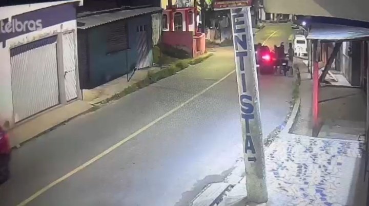 Nas imagens, a via aparece inicialmente tranquila. Em seguida, um motociclista estaciona em frente a uma residência enquanto conversa com outra pessoa.