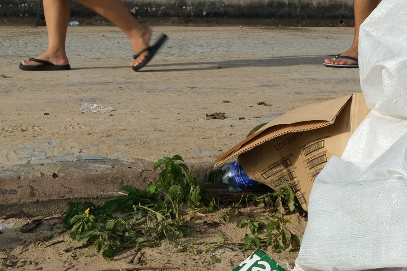 Ao longo de toda a extensão da faixa de areia, do calçadão e até nas áreas mais elevadas da praia, havia grande quantidade de garrafas plásticas, copos descartáveis, sacolas e outros resíduos sólidos. Com as chuvas registradas na segunda-feira, 2, parte desse material também foi arrastado para o rio Negro, agravando os impactos ambientais, já que muitos desses resíduos levam centenas ou até milhares de anos para se decompor.