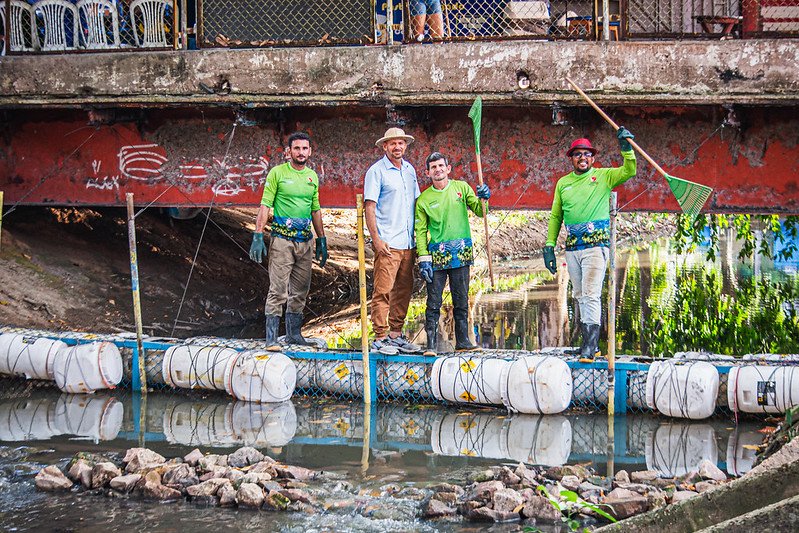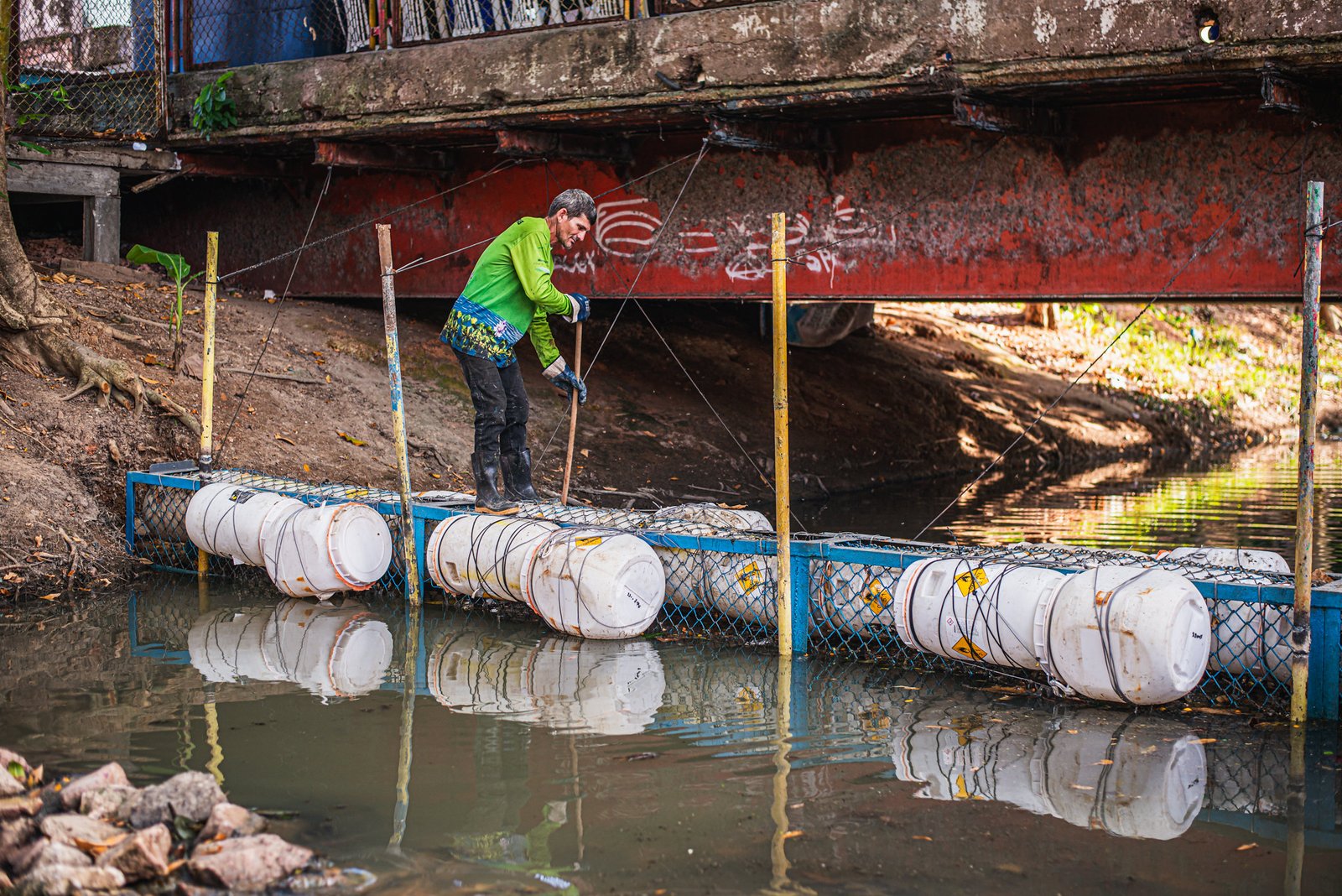 “Estamos realizando o desassoreamento de forma manual, pois não tem como entrar as máquinas. Logo depois, iremos realizar a instalação das outras ecobarreiras”, explica o ativista.