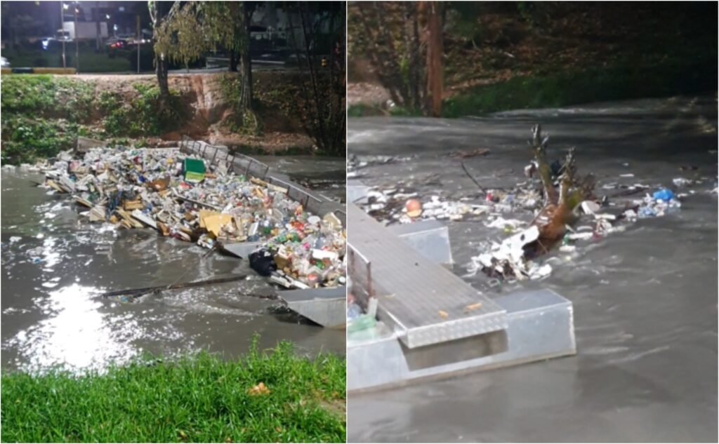 Na noite desta terça-feira, 25/11, a artista visual e comunicóloga Michelle Marques de Moraes, que costuma praticar exercícios na área, registrou uma grande quantidade de garrafas PET, isopor, sacolas plásticas, madeira e outros materiais acumulados no curso d’água.