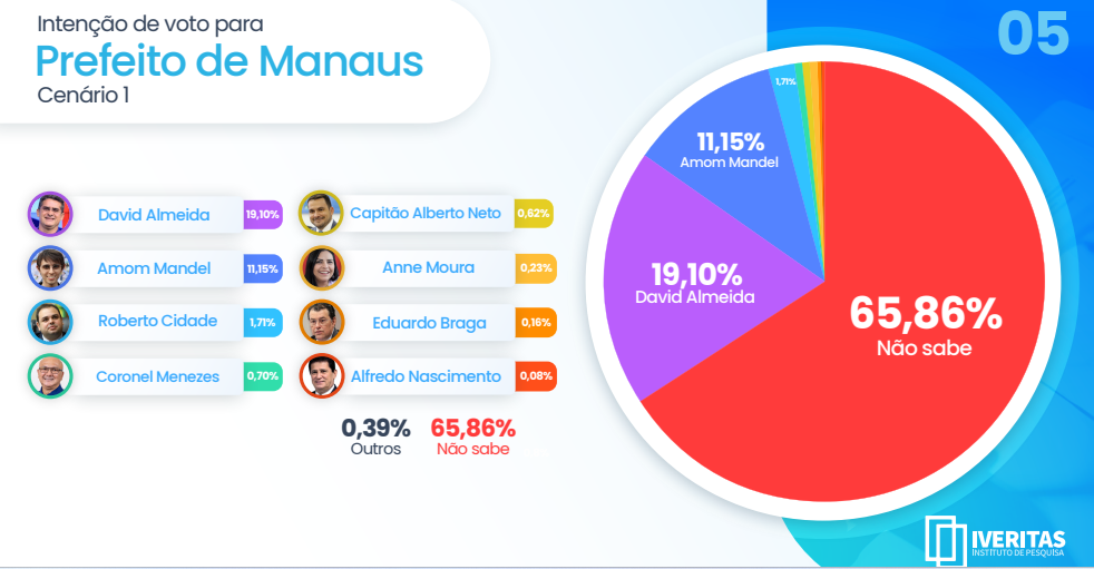 Cenário 1 da pesquisa aponta como indecisos 65,86% da população (Reprodução/Iveritas)