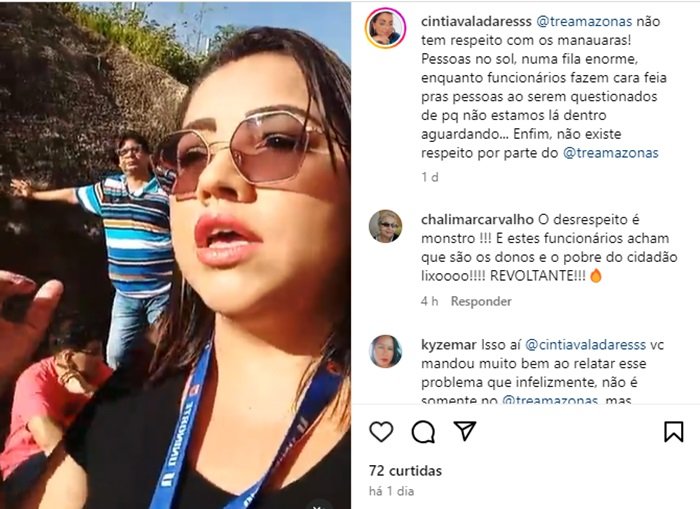 Cíntia Valadares, durante sua live, afirmou que o TRE-AM não tem respeito com os manauaras! “Pessoas no sol, numa fila enorme, enquanto funcionários fazem cara feia ao serem questionados pelo tratamento que estamos recebendo”, denunciou.