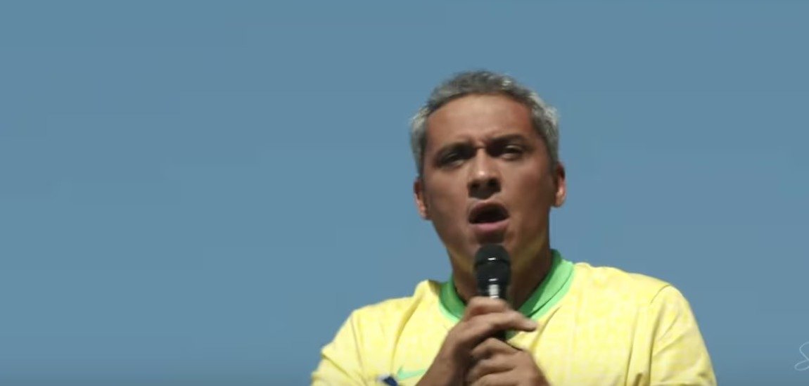 RIO DE JANEIRO (RJ) – O deputado bolsonarista Gustavo Gayer (PL-GO) participou do ato em defesa do ex-presidente Jair Bolsonaro (PL), na Praia de Copacabana, no Rio de Janeiro, neste domingo, 21/4, e fez parte do discurso em inglês porque “o Elon Musk está olhando”.