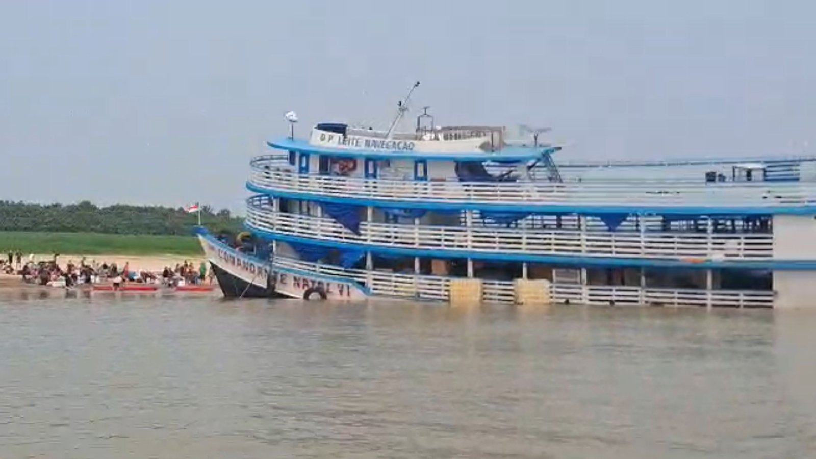 Vídeos compartilhados nas redes sociais mostram que parte da embarcação tombou, e os passageiros ficaram desesperados com a situação. Botes foram utilizados para transportar as pessoas em segurança.