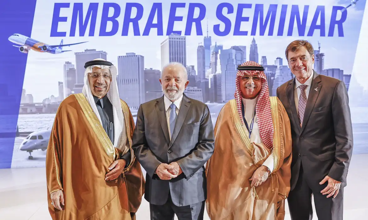 BRASÍLIA (DF) – O presidente Luiz Inácio Lula da Silva afirmou, nesta quarta-feira, 29/11, que é interesse do governo e do país que as empresas brasileiras ganhem escala no comércio global. Lula está em viagem ao Oriente Médio e participou da apresentação de produtos da Embraer em Riade, na Arábia Saudita.