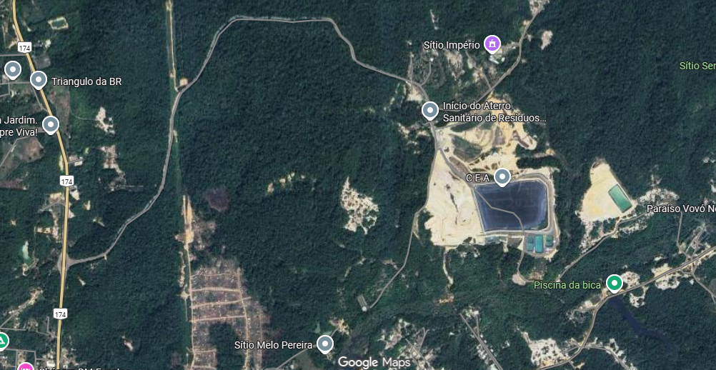 Localizado no Ramal Itaúba, no quilômetro 13 da BR-174, no bairro Tarumã, zona Oeste de Manaus, o aterro privado fica próximo aos igarapés do Leão e Tarumã-Açu, e desde o anúncio do projeto enfrenta críticas sobre possíveis riscos de contaminação dos recursos hídricos.