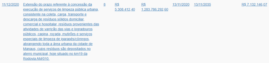 O contrato original já passou por oito aditivos, o último deles assinado ainda em 2020, durante a gestão do ex-prefeito Arthur Virgílio Neto.