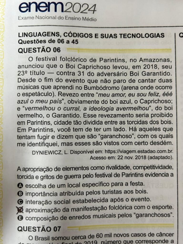 “Ao abordar a cultura e as tradições do Amazonas em uma prova nacional como o Enem, eu acho que o Brasil passa a reconhecer de certa forma e a valorizar a riqueza cultural da região. Os Bois de Parintins, por exemplo, representam não apenas uma festa popular, mas são símbolos de identidade e resistência cultural amazônica”, destacou o linguista amazonense.