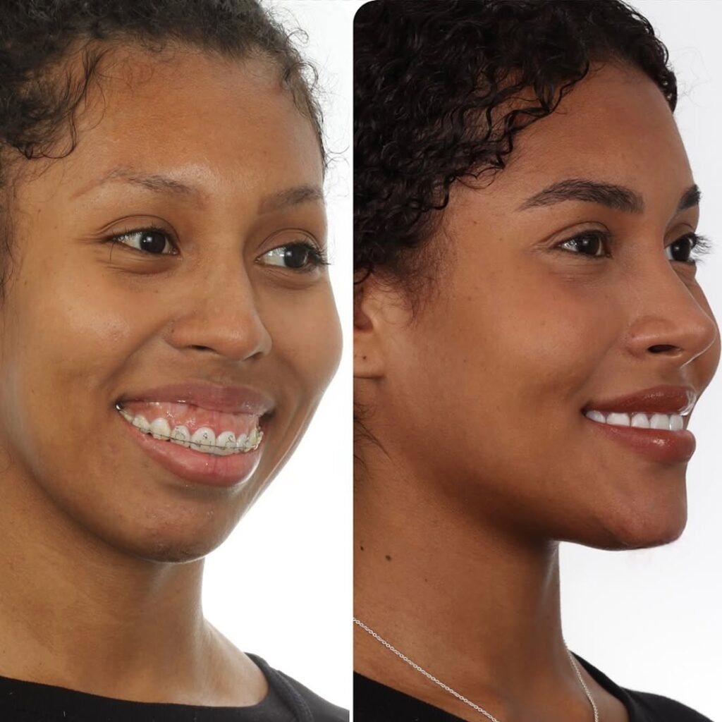 A médica Katyuscia Kojeve, responsável pelo procedimento, explicou nas redes sociais que a paciente apresentava um excesso vertical de maxila com deformidade esquelética classe II e disfunção valvular nasal, além de um “sorriso gengival”.