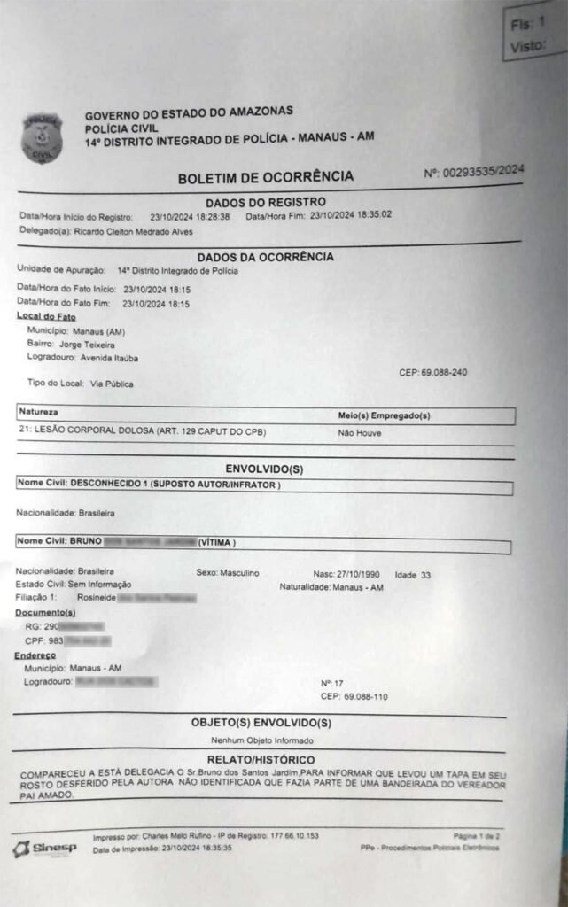 O caso aconteceu na noite desta quarta-feira, 23/10, na rotatória do bairro Jorge Teixeira, em meio ao intenso debate que ocorreu entre os candidatos na TV ACritica. Segundo Bruno, que é o líder dos apoidores de Alberto, os ataques foram constantes e acabou em agressões físicas e verbais.