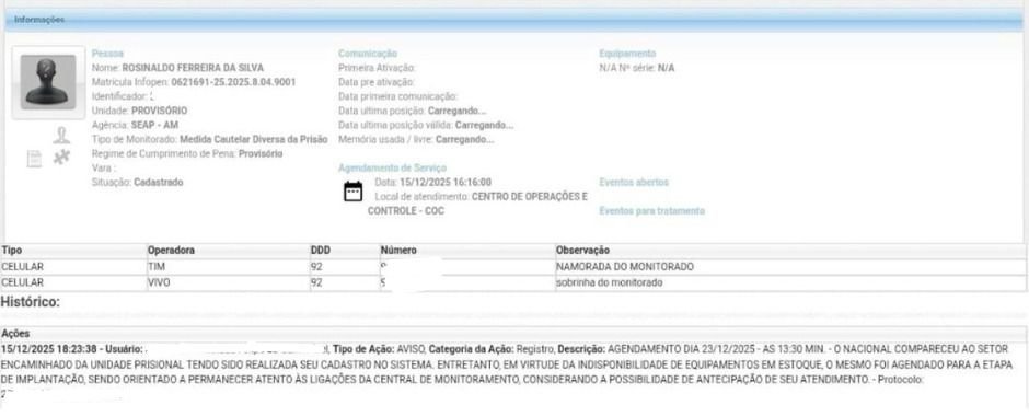 Conforme o agendamento registrado, Bual foi orientado a retornar no dia 23 de dezembro de 2025, às 13h30, para a etapa de implantação do dispositivo. Até lá, ele deverá permanecer atento a possíveis ligações da Central de Monitoramento, já que há possibilidade de antecipação do atendimento caso surjam equipamentos disponíveis.