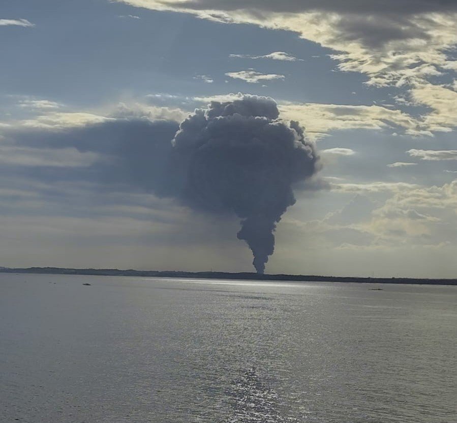 Fumaça do incêndio é vista do Rio Negro, há quilômetros de distância – (Foto: Reprodução/Internet)