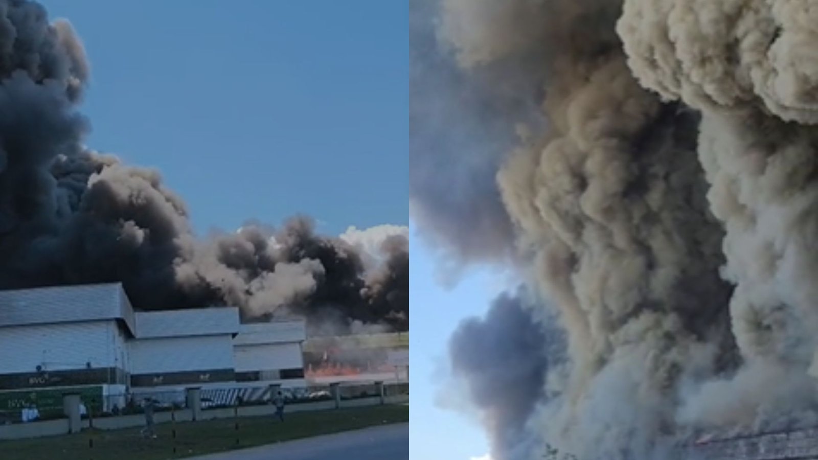 Nas imagens que circulam na internet, é possível observar que as chamas teriam começado nas instalações da empresa Effa Motors, montadora de veículos.
