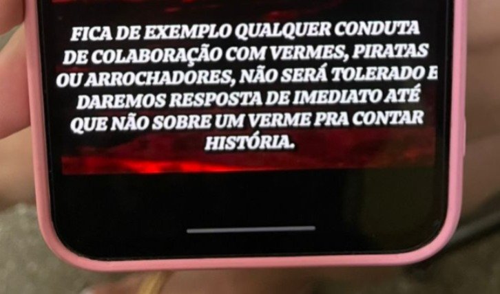 A mensagem alerta: “Fica de exemplo, qualquer conduta de colaboração com vermes, piratas ou arrochadores, não será tolerado e daremos a resposta de imediato”.