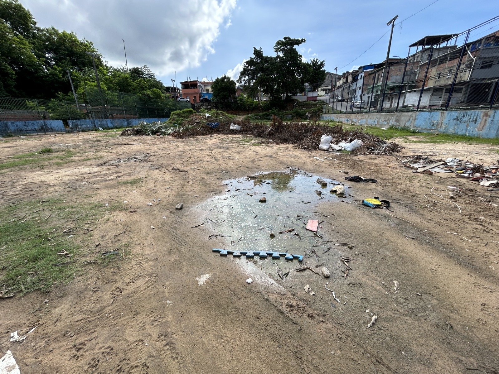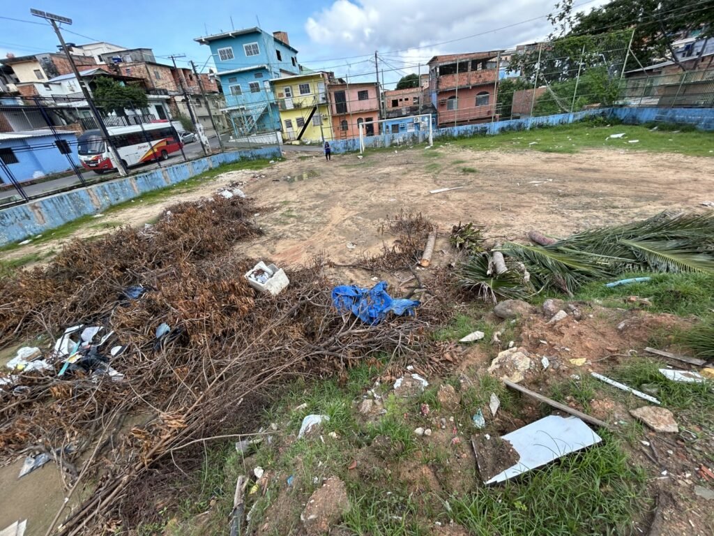 O morador Théo Fernandes destacou que o espaço, que deveria ser usado para o lazer das crianças e moradores, foi tomado pelo lixo.