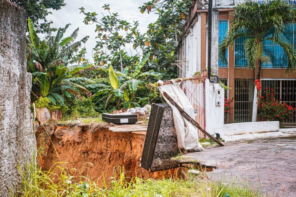 MANAUS (AM) – As fortes chuvas do fim de semana causaram o desabamento de um muro, abrindo uma cratera no final da rua Conde, Núcleo 23, bairro Cidade Nova, zona Norte de Manaus. A preocupação dos moradores é que ocorram novos deslizamentos prejudicando as casas ao redor.