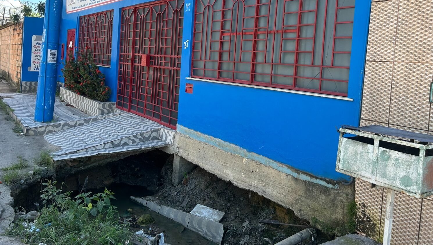 Uma enorme cratera em frente à Igreja Pentecostal Caravana da Fé obrigou a suspensão dos cultos há meses. “A Águas de Manaus veio, cavou e deixou o buraco. Agora a igreja está isolada. Já teve carro que caiu ali. Com isso, os cultos foram interrompidos. Ficamos ilhados”, contou o comerciante Walter Coelho, de 61 anos.