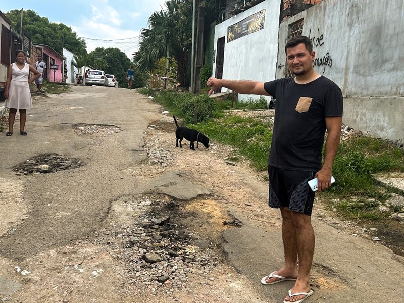 “Somos nós que fazemos o trabalho. Tapamos um pouco aqui, outro ali, para evitar que as crateras se alastrem pela rua. Quem tem carro enfrenta muitas dificuldades para circular. Entra governo, sai governo, e nada muda”, desabafa uma moradora.