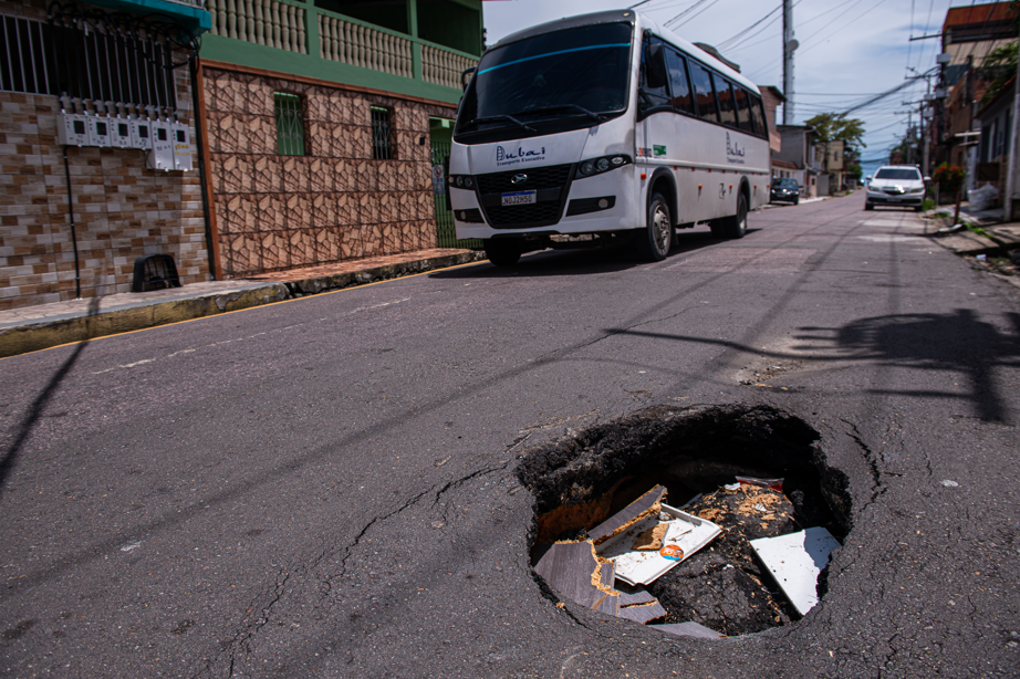 Além da falta de infraestrutura, os riscos de acidentes no local estão aumentando. O vendedor Alderito Torres falou que a cratera e outros buracos já causou diversos prejuízos a motoristas e pedestres.